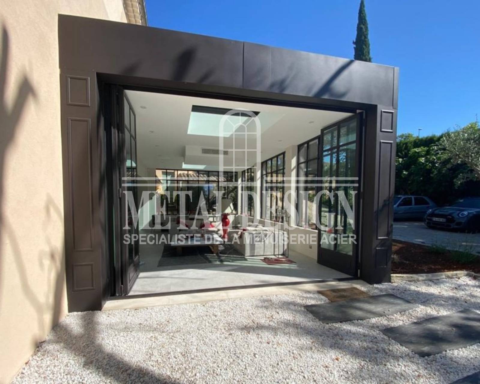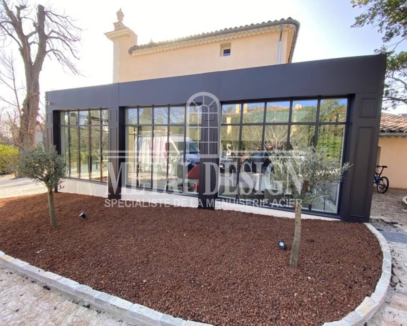 Lors d'une rénovation, notre client souhaitait créer des agrandissements avec des vérandas en acier à divers endroits de cette maison à Aix-en-Provence.