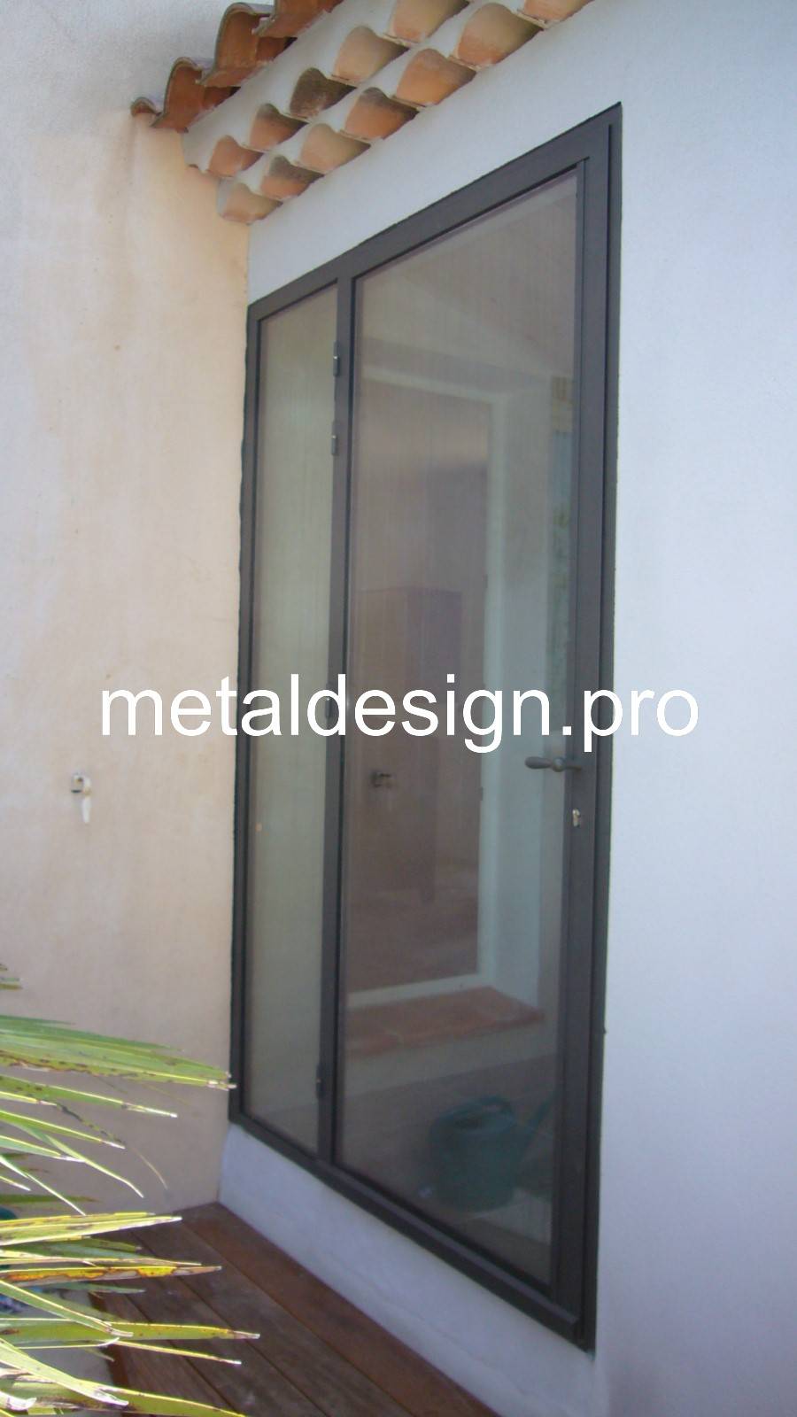 Cet ouvrage est une porte donnant sur un hall en accédant du jardin. Elle est composée d'un fixe et d'un ouvrage à l'anglaise (qui s'ouvre vers l'extérieur). Mais... attention à la marche !