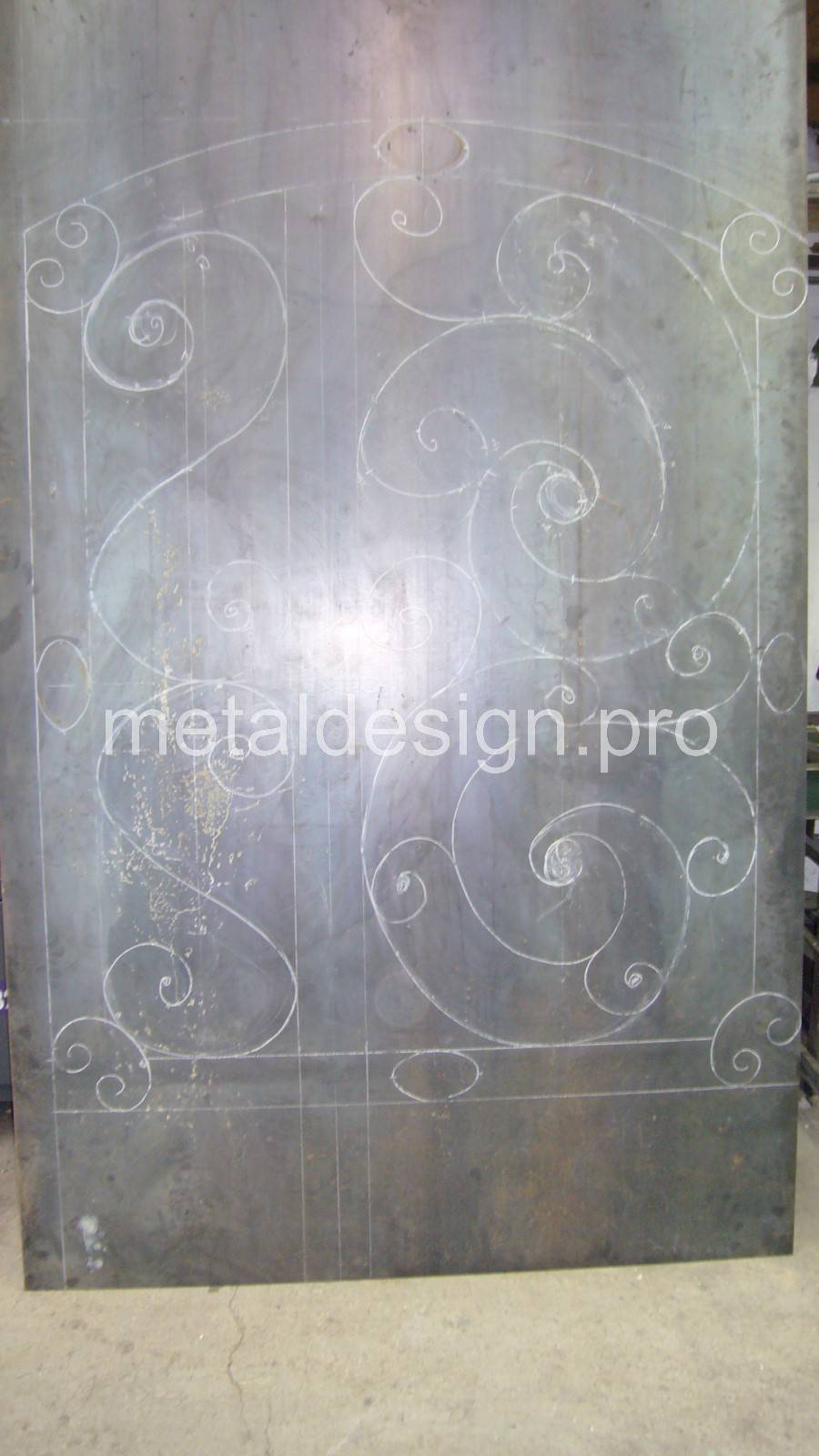 La porte a été dessinée et fabriquée par l'équipe de Métal Design sur gabarit puis fabriqué dans l'atelier par les ouvriers de l'entreprise.