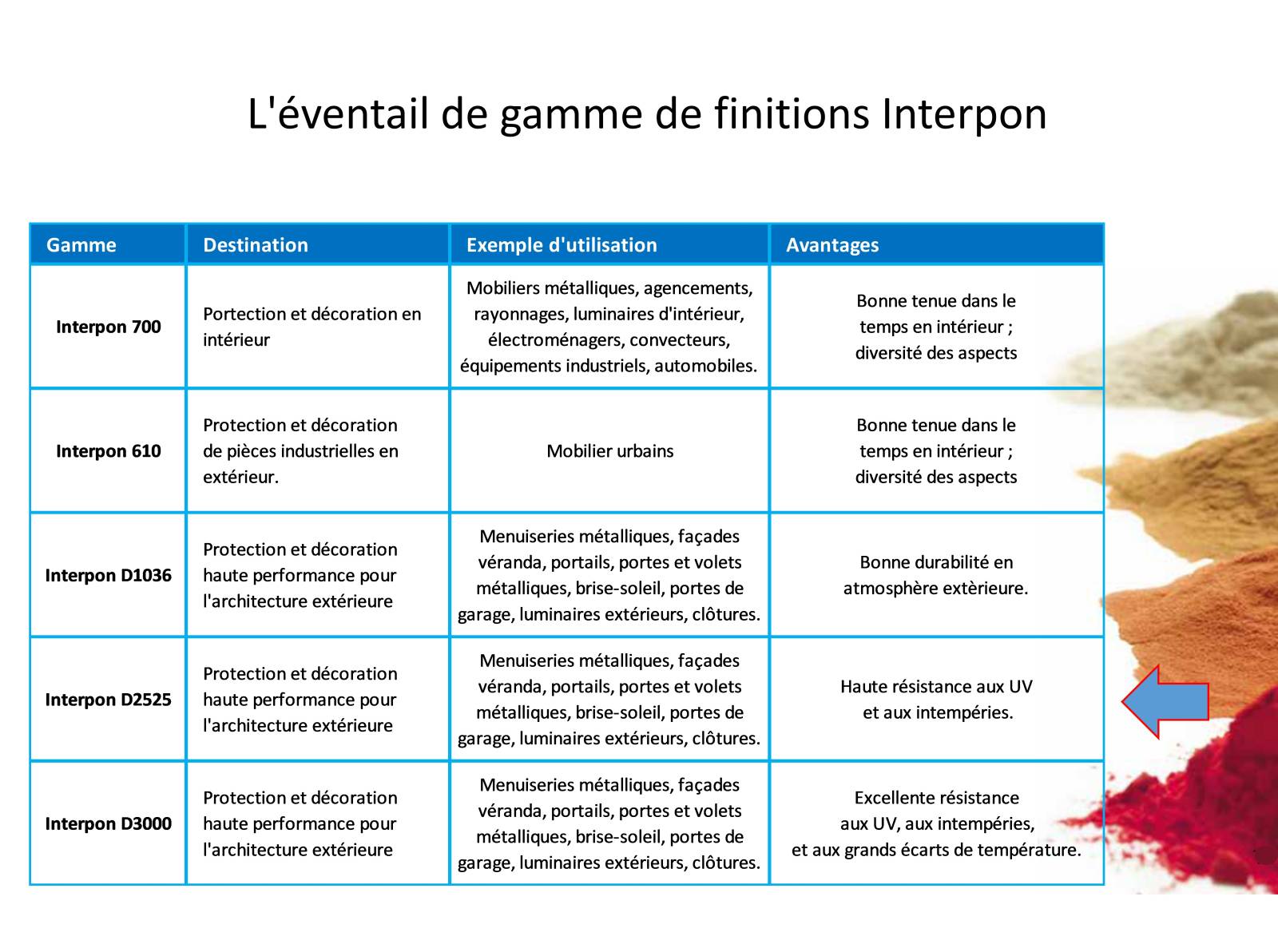 La marque Interpon propose 5 gammes de produits avec des résistances variées que vous pouvez voir en image.