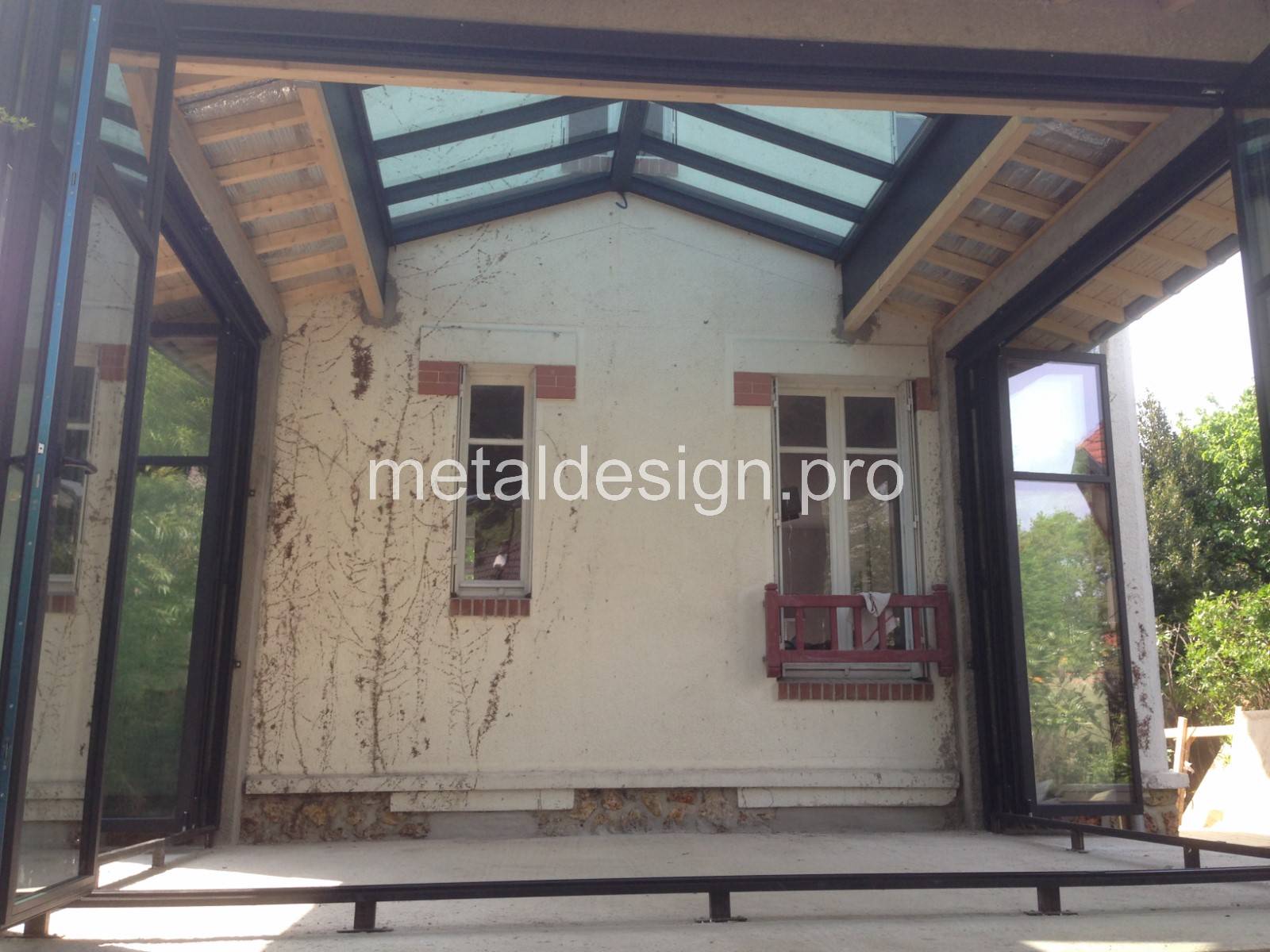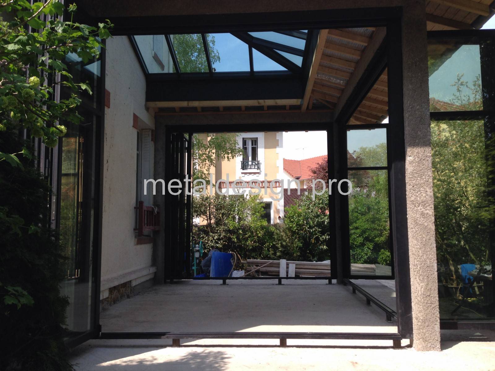 Un client a appelé Métal Design pour réaliser une véranda dans le Vésinet proche de Paris. Il voulait transformer une terrasse en pièce à vivre. Métal Design a réalisé cette véranda en acier sur mesure.