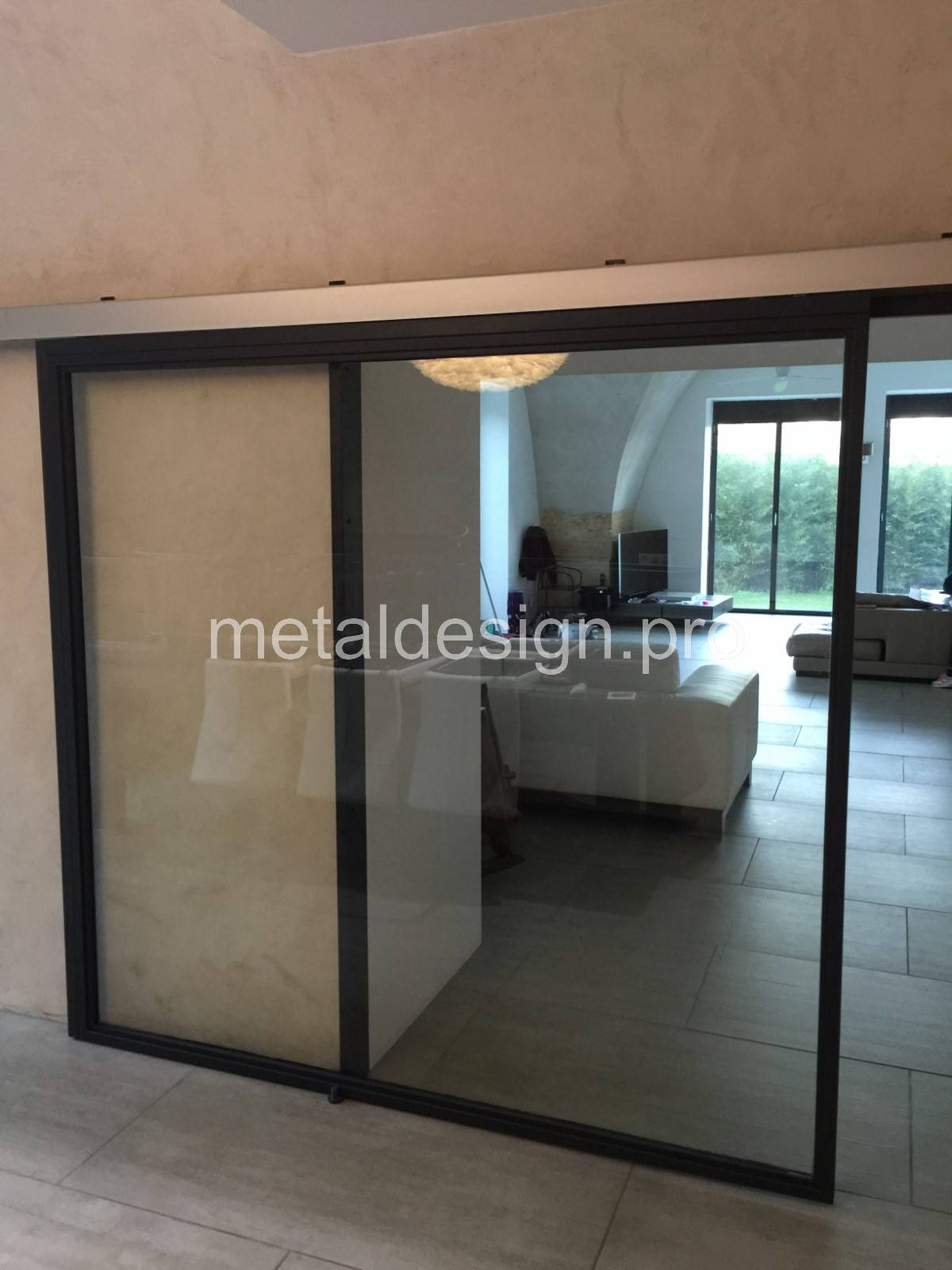 Métal Design, votre spécialiste de la menuiserie métallique a créé cette verrière intérieure vitrée en acier sur mesure haut de gamme à Grans.Cette porte est coulissante sur un rail haut. Cela permet de n'avoir aucun rail au sol pour gêner le passage ou le nettoyage. Cette porte isole la cuisine d...